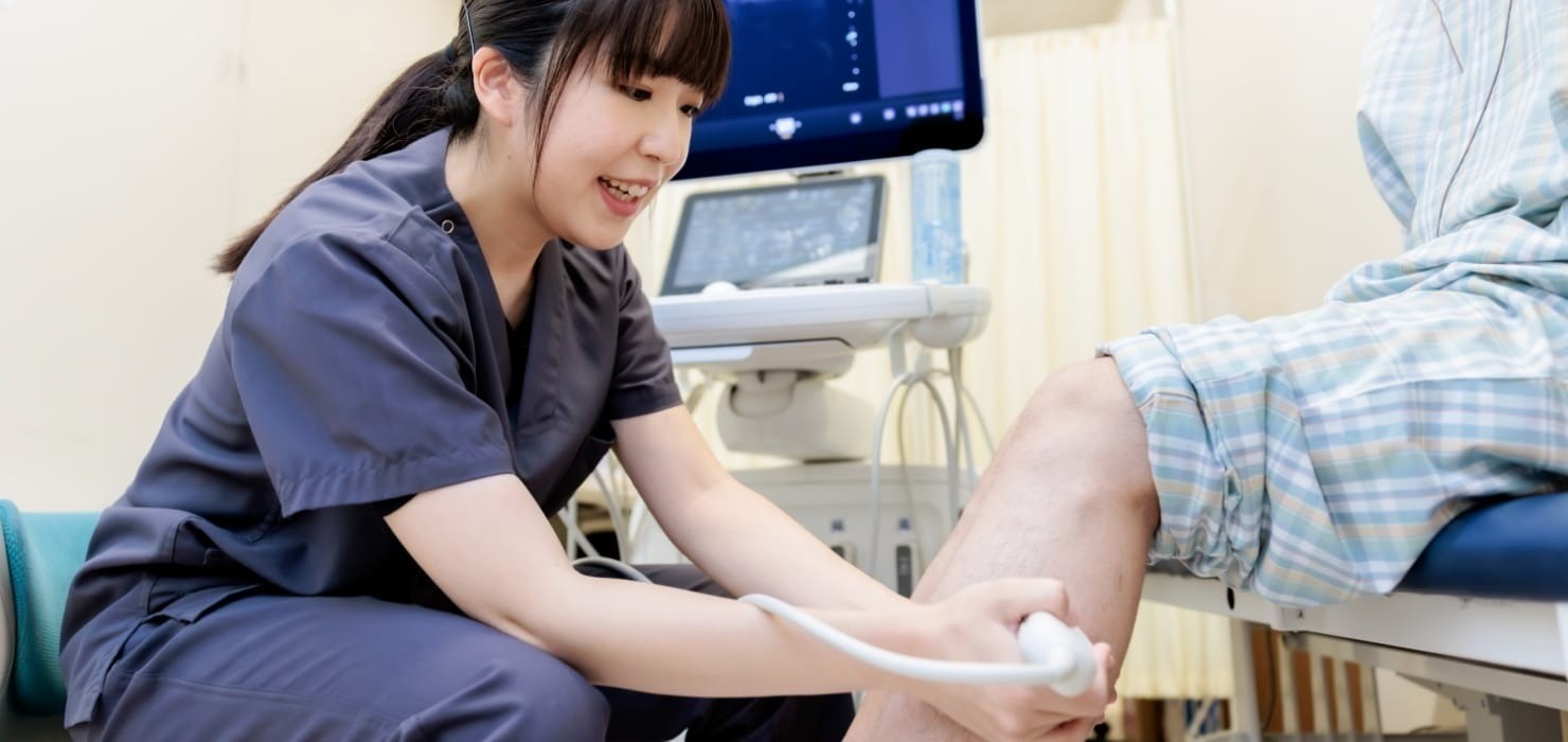 動脈硬化による下肢の痛み、下肢のむくみに対するスクリーニング検査、静脈瘤、動脈瘤の治療前後の評価、精査等幅広く検査しています。動脈硬化の跛行距離を評価する近赤外線分光法の検査も実施しています。またガイドエコーは、カテーテル挿入などの処置を行う際にエコーで血管の状態を確認しながらカテーテルを誘導し、より安全で正確な処置を可能としています。