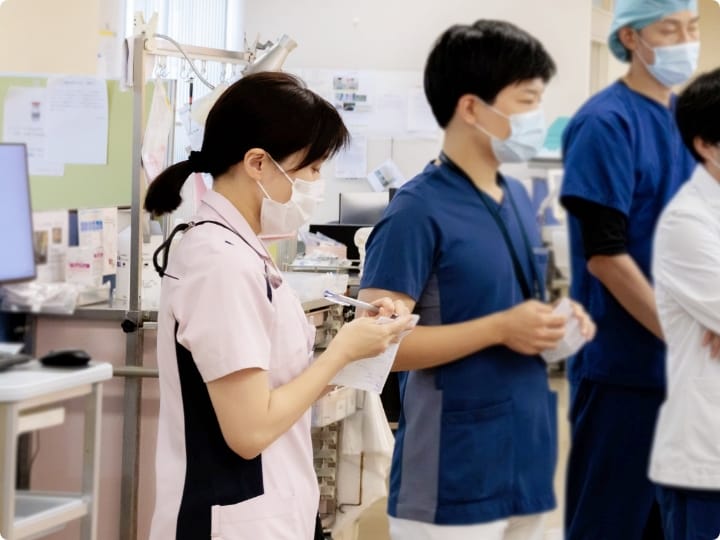 また言語聴覚士と協働して、より安全な食事量、食形態を提案します。多職種による専門性を活かし、栄養面からも疾患の治療に積極的に貢献できるよう、努めています。