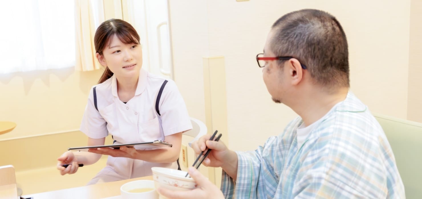 食欲不振等で食べられない場合は、主治医の許可のもと、麺や全粥など主食の変更や食事量の調整、付加食などにより召し上がりやすくなるよう対応していますので、ご相談ください。