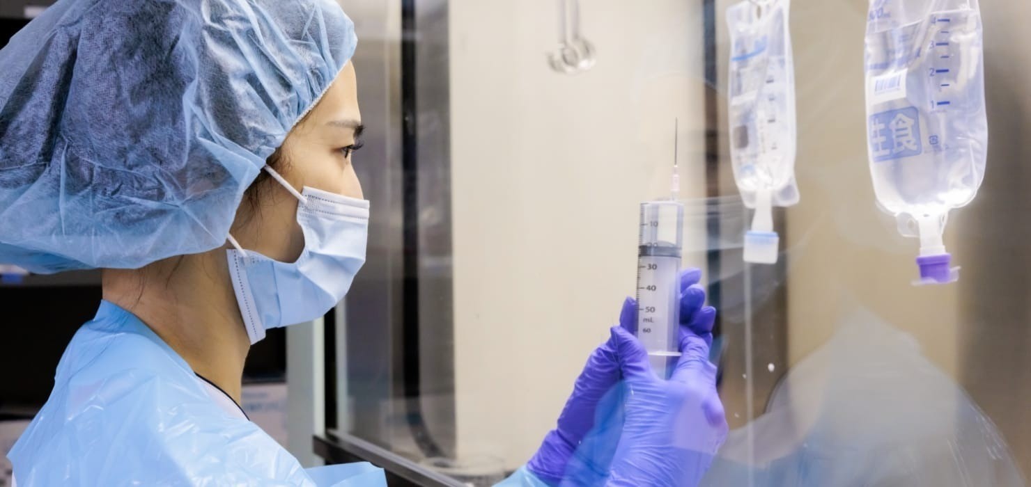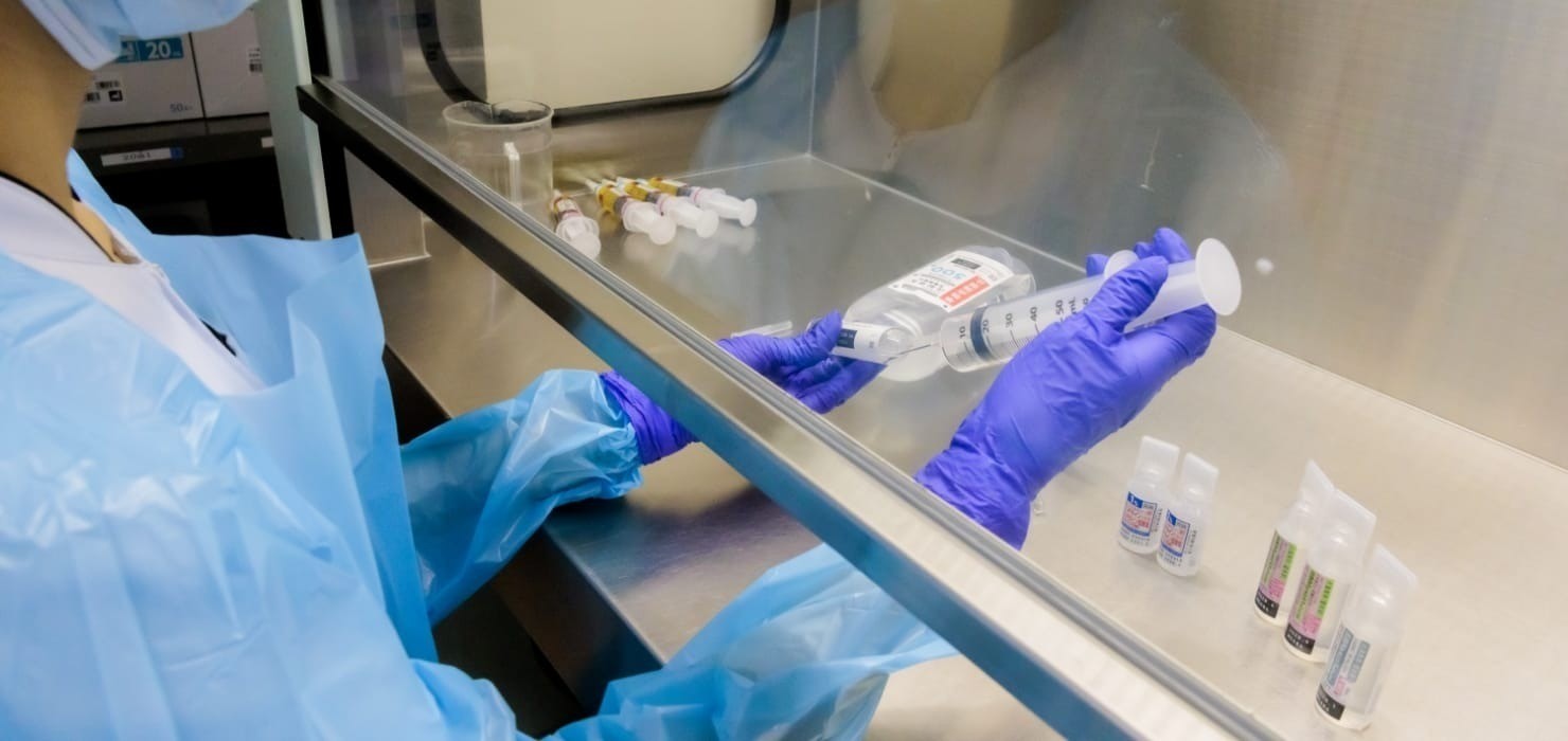 医師の処方箋のもと、薬をとりそろえる調剤のほか、入院患者さんの毎日の薬(内服・注射)のセット、高カロリー輸液や心臓手術に使用する注射薬の調製などを行っています。