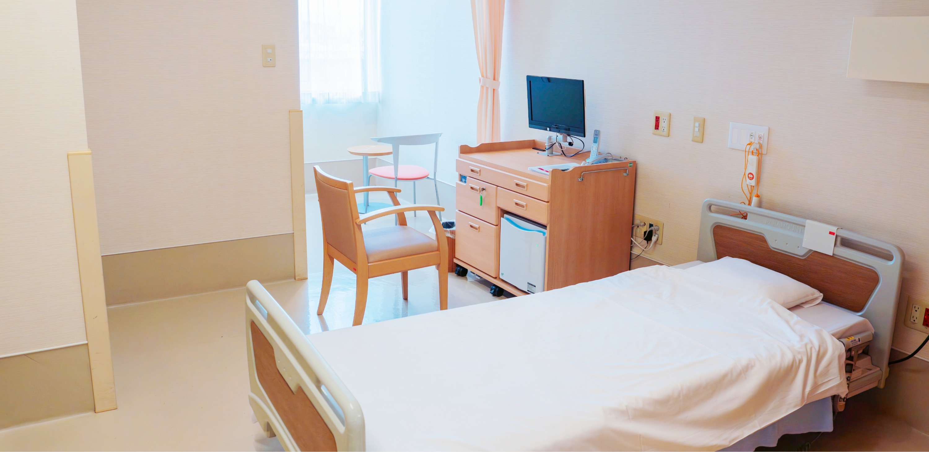 当院では、患者さんのご希望に応じてさまざまなお部屋のタイプをご用意しております。室料差額(個室料金など)は、健康保険の有無にかかわらず、1日あたりの税込料金となります。料金は午前0時を起点として計算されます(例:1泊2日の入院の場合、2日分の料金がかかります)。