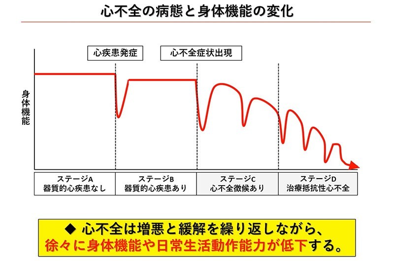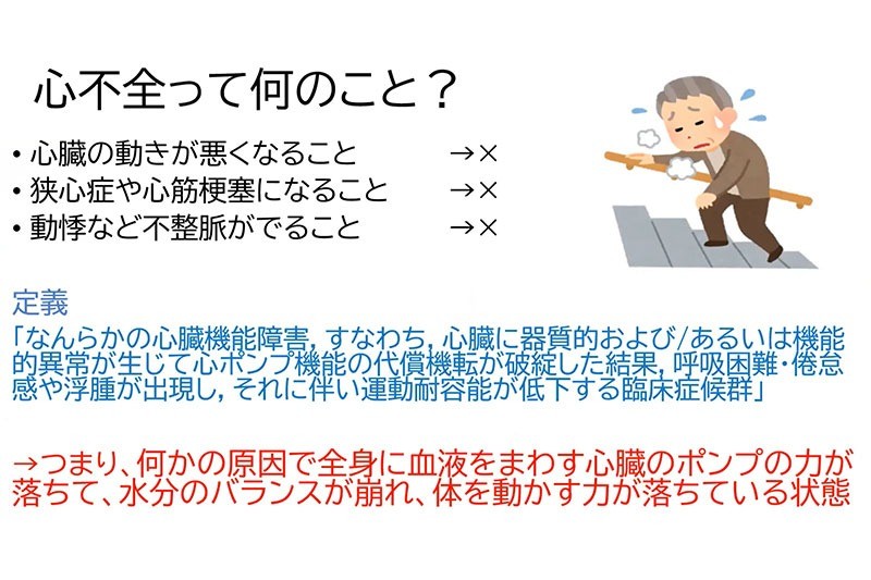 何かの原因で全身に血液をまわす心臓のポンプの力が落ちて、水分のバランスが崩れ、体を動かす力が落ちている状態が心不全です。心不全は予防が大事。努力で寿命が変わります。心不全についてよく知り、食事・薬・生活習慣を見直すことで、心不全と上手くつきあい予防することができます。
