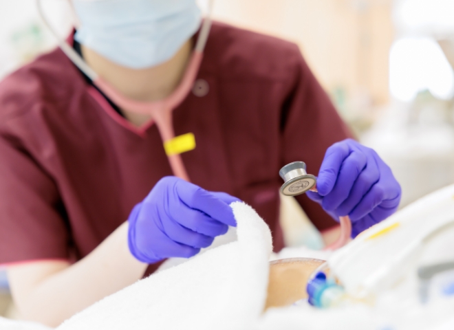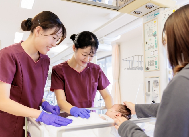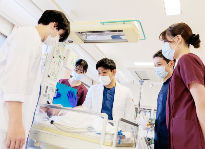 当院は先天性心疾患に特化したNICUです。重症先天性心疾患を持つ新生児に対し、急性期看護を提供します。プレネイタルビジット(産前訪問)を通し、胎児期から関係を築き、出生後は小さな命の変化を見逃さないよう、細やかな観察と迅速な判断で医師や多職種と連携し、新たな家族の形成を支えるチーム医療を提供しています。高度な専門知識を身につけながら、新生児看護の奥深さを実感できる環境です。